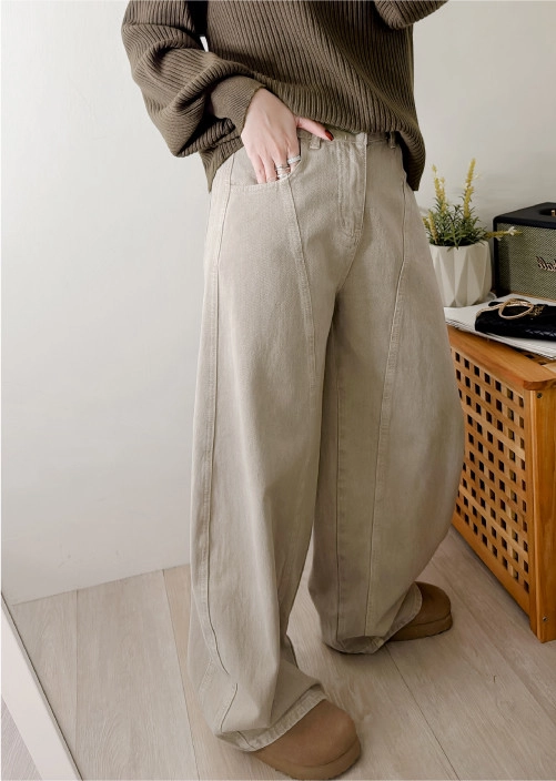 顯瘦水洗車線繭型褲