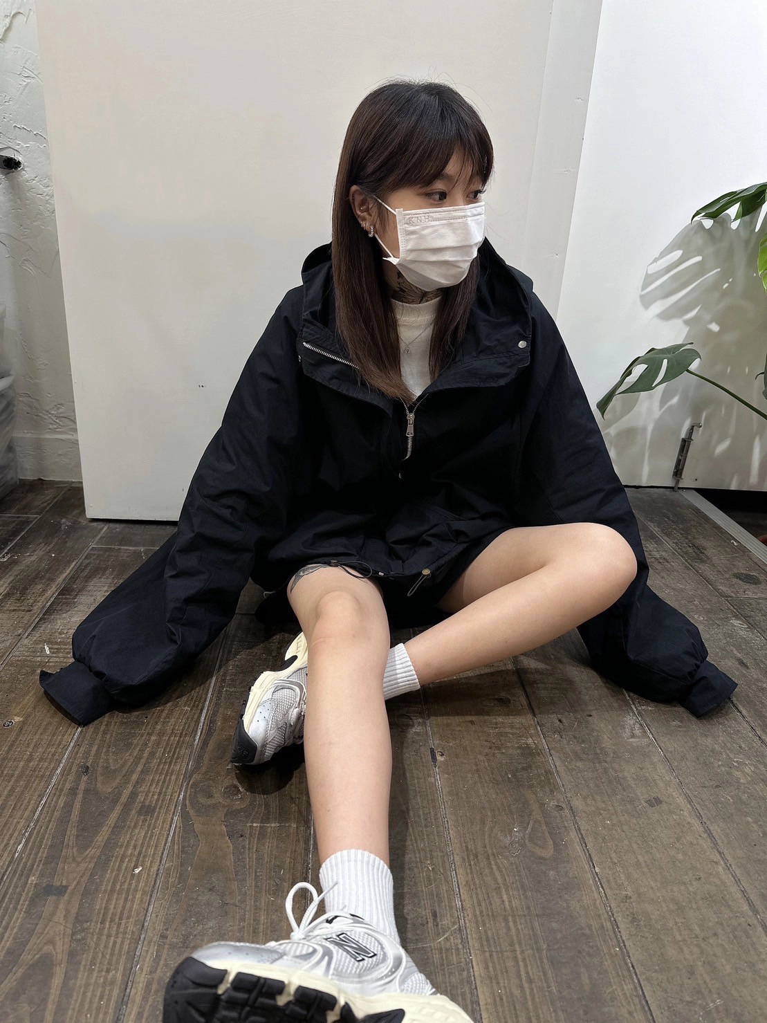 接著又穿它走在室內停車場