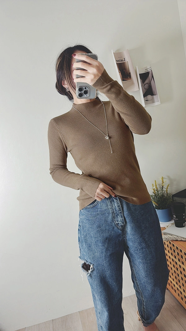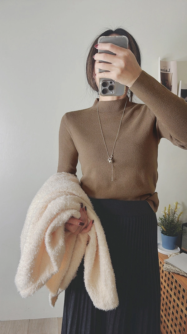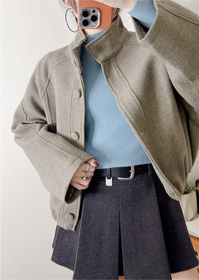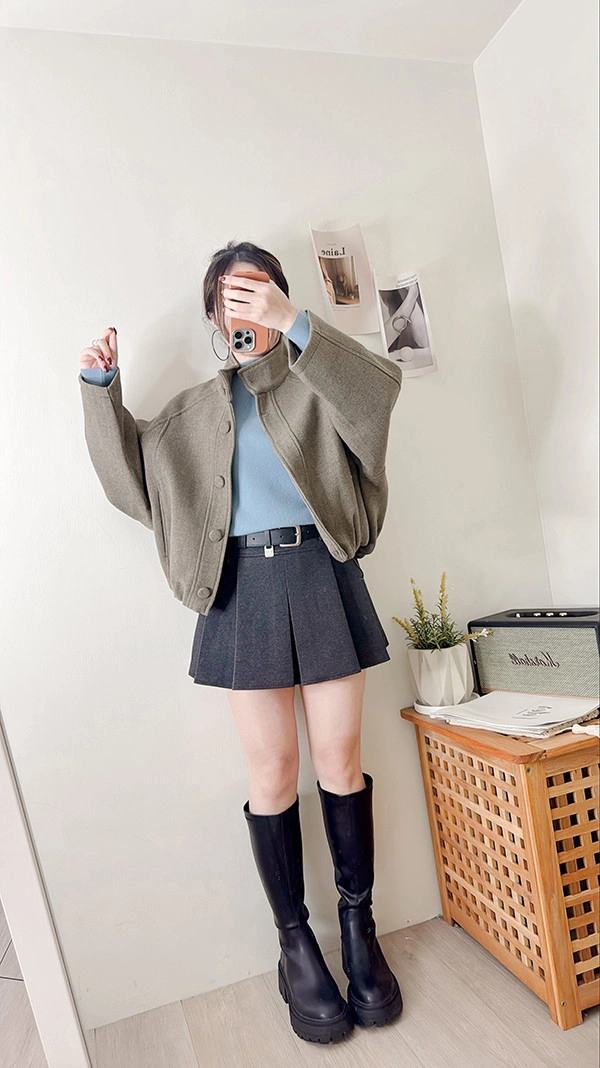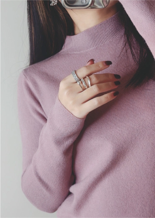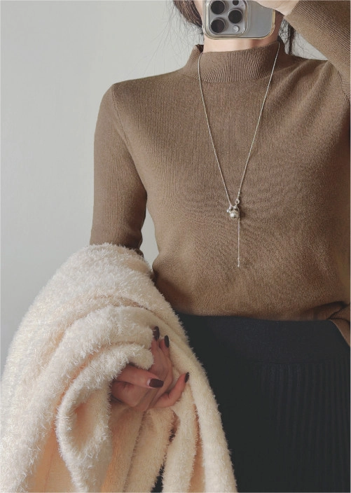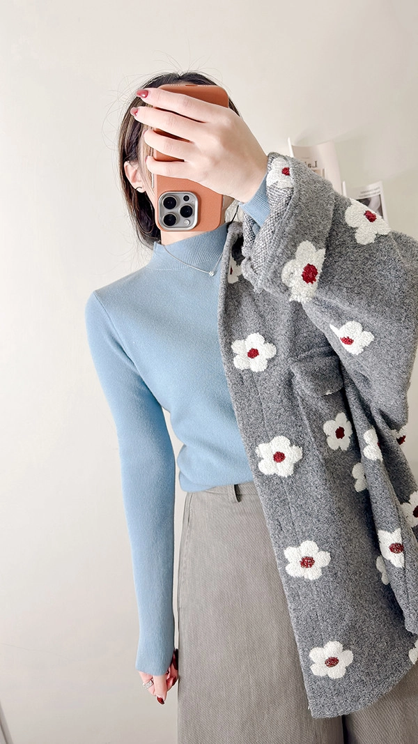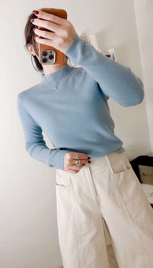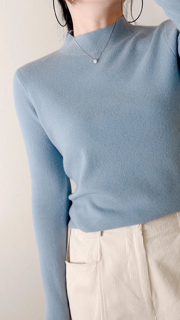 棉柔手感,顯瘦直角肩小立領針織衣