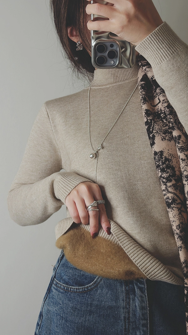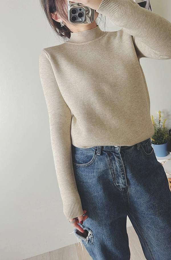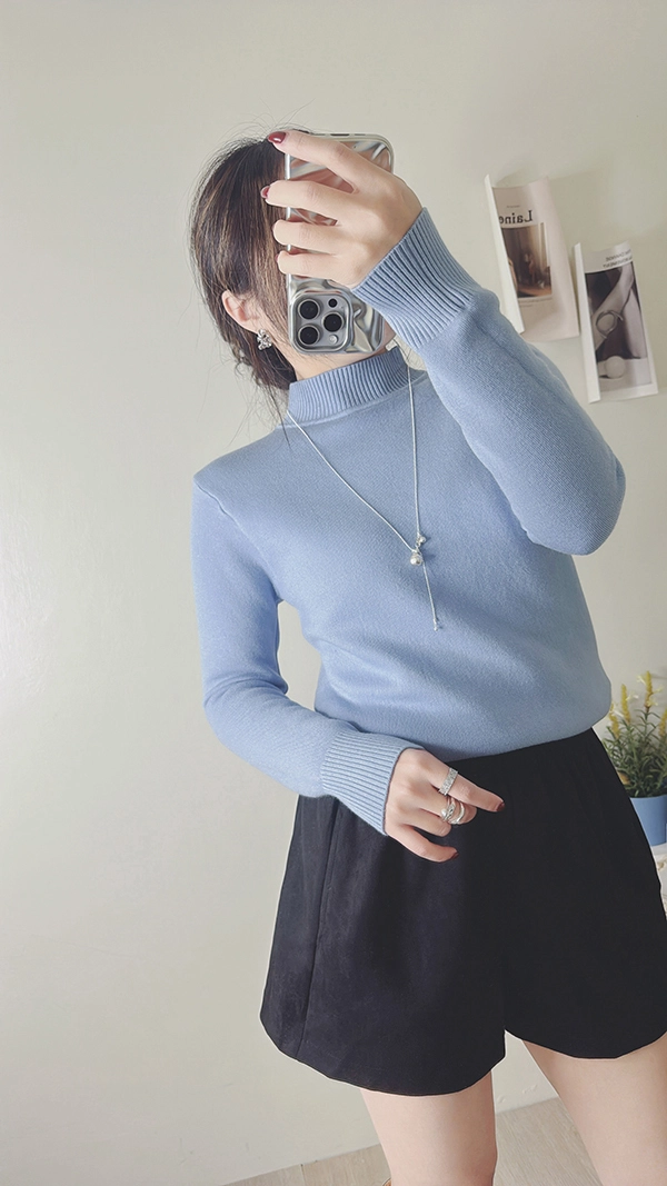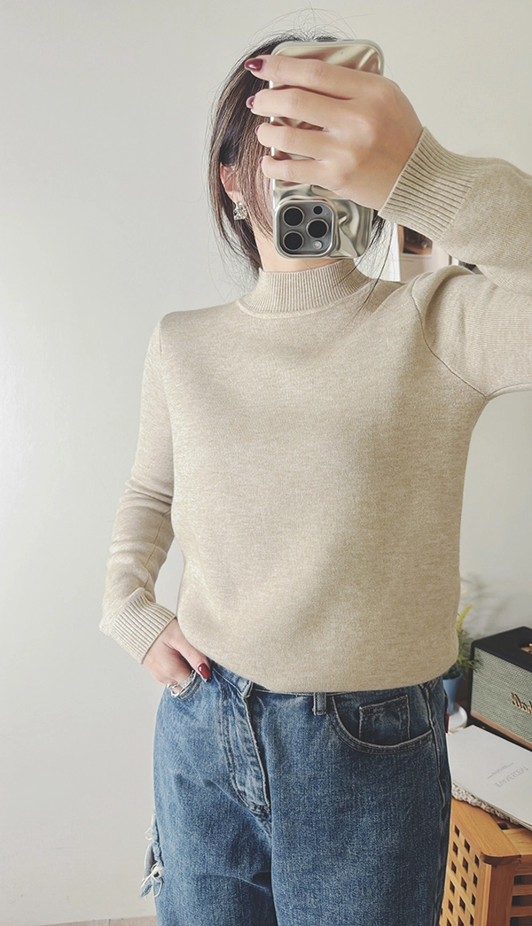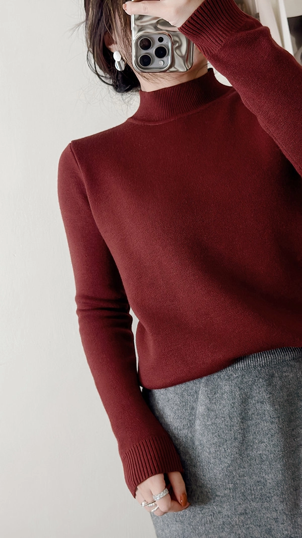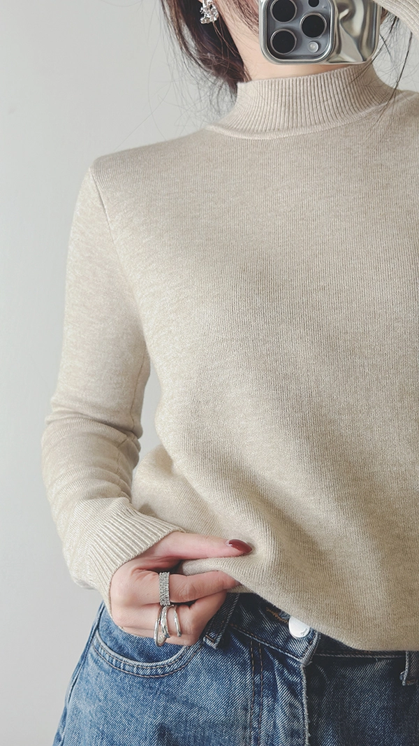 棉柔手感,爆暖羊絨顯瘦直角肩小立領針織衣