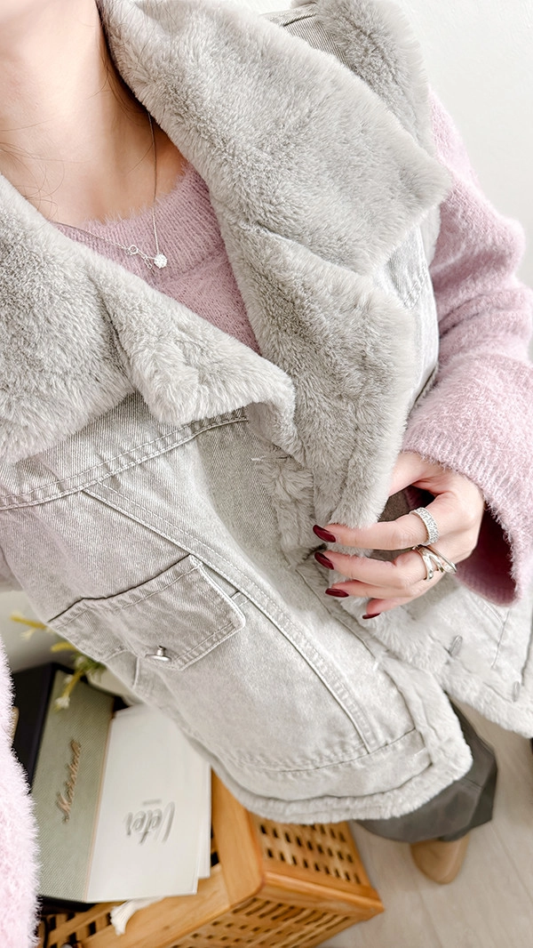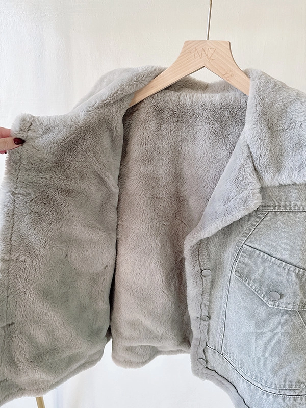 牛仔外層配上整件毛絨絨內裡