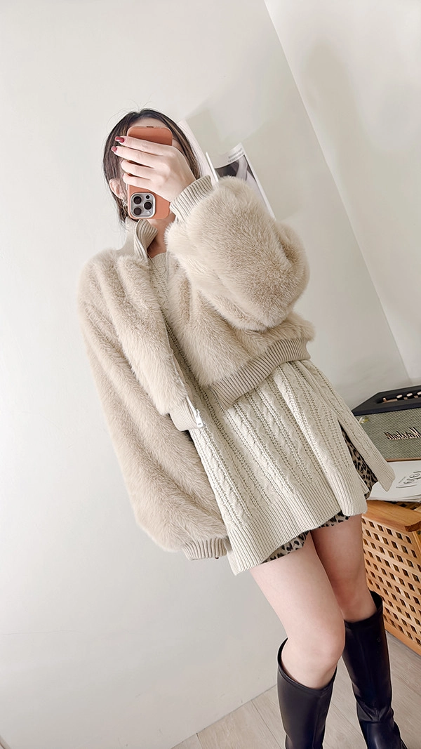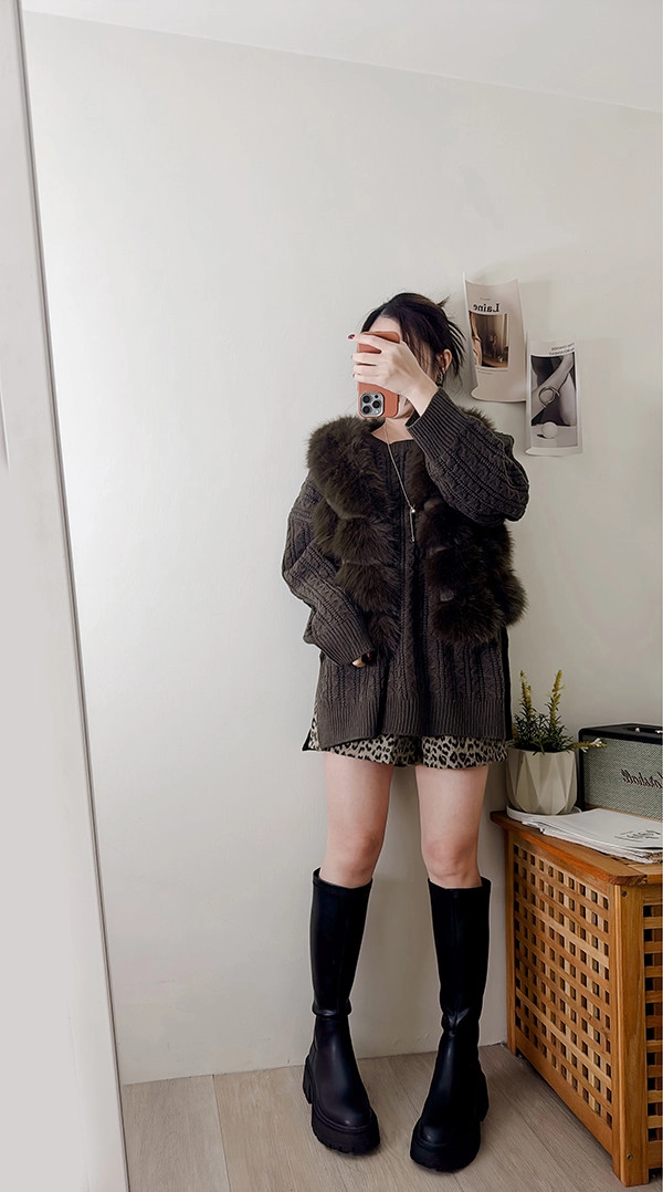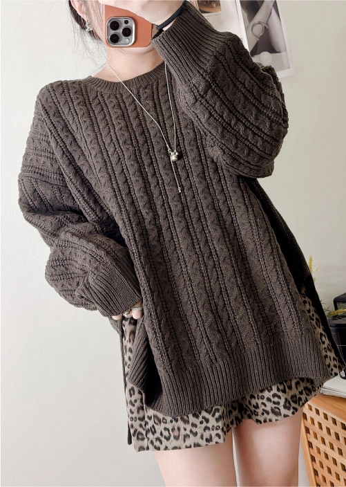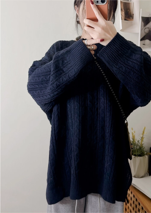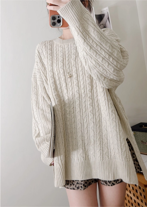 棉柔手感,側開衩長版麻花毛衣